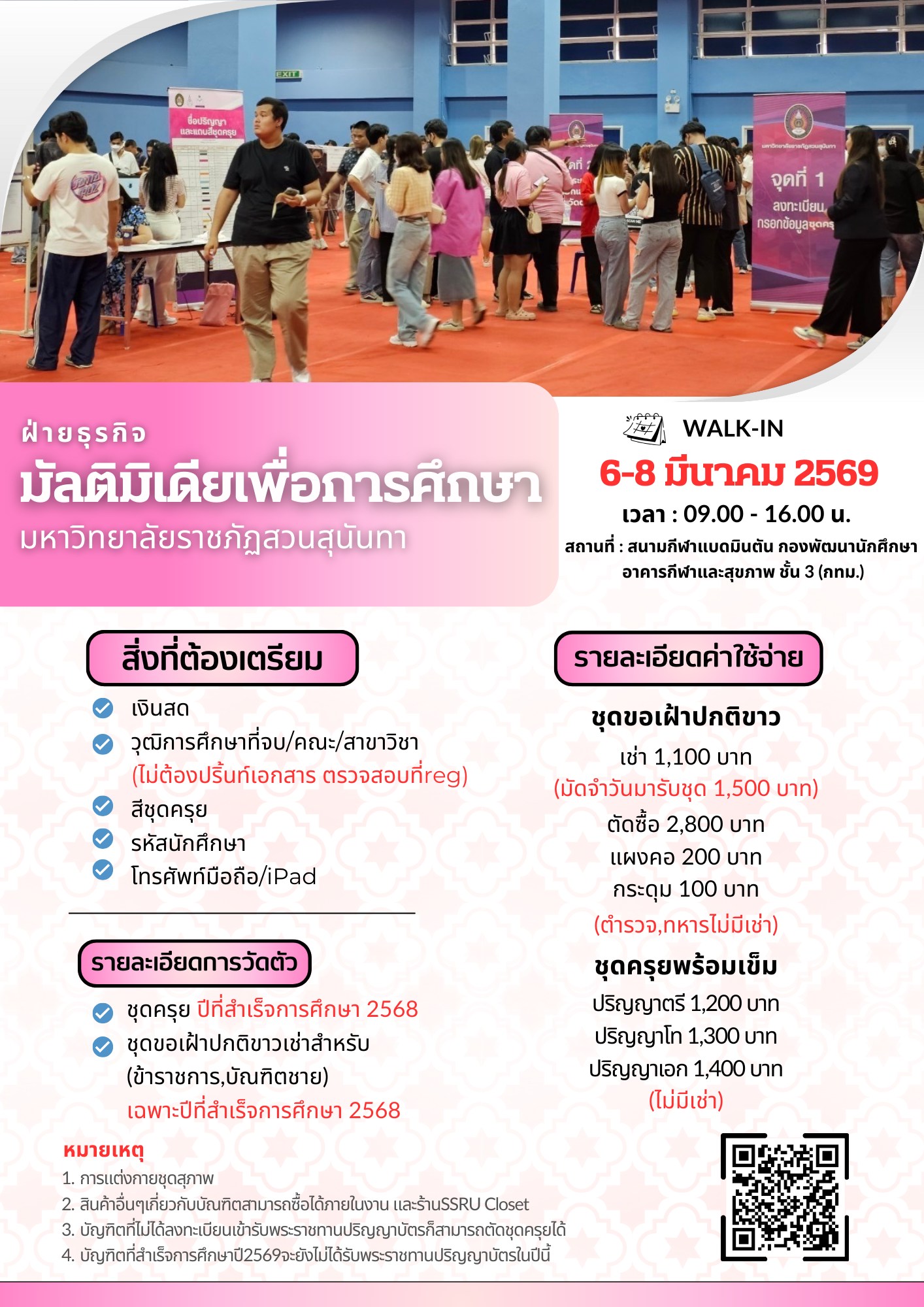 Walk-in Dates: March 6 – 8, 2026Time: 09:00 AM – 04:00 PMLocation: Badminton Court, Student Development Division, Health and Sports Center Building, 3rd Floor (Bangkok Campus)
