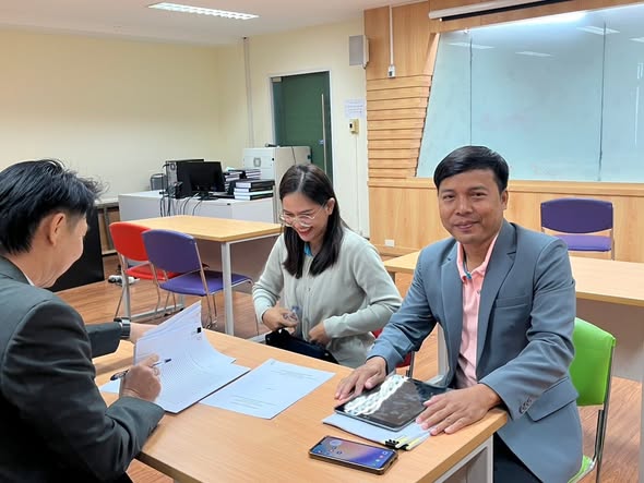 Wednesday, October 22, 2025.Master's degree students (Thai Program) attending a thesis consultation session with their advisor, Asst. Prof. Dr. Nantawut Nunart.